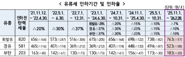 유류세·자동차 개별소비세 인하 연장 기간