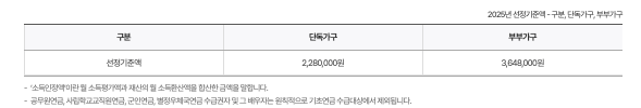- 가구 유형(단독·부부가구 등)에 따른 지급 기준