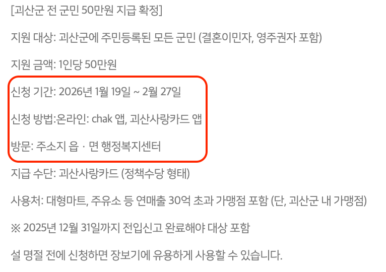 주민등록 기준을 충족한 괴산군 거주 주민 전체를 대상으로 안내되는
