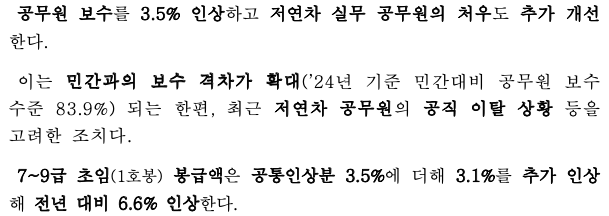 모든 공무원 봉급에 공통적으로 3.5% 적용