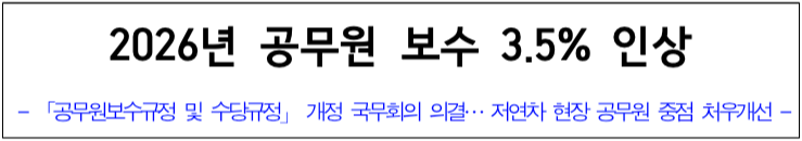 2026년 공무원 보수는 전년 대비 평균 3.5% 수준으로 조정