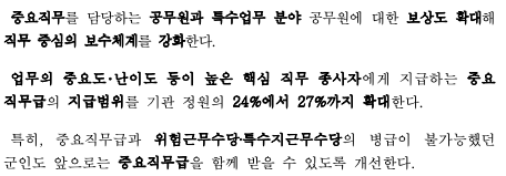 - 업무량과 근무 기간 및 업무 특성 등을 종합적으로 고려한 수당 마련