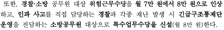 경찰공무원 위험근무수당: 월 7만 원 → 8만 원