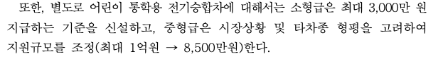 중·대형 전기승용차: 보조금 총액이 확대 적용될 수 있음