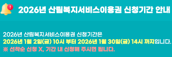 산림복지바우처 신청기간은 2026년 1월 2일부터 1월 30일까지 신청할 수 있습니다.