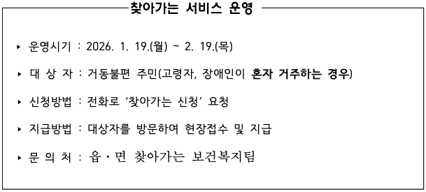 읍·면 행정복지센터에 전화하면 직접 찾아와서 신청을 도와주는