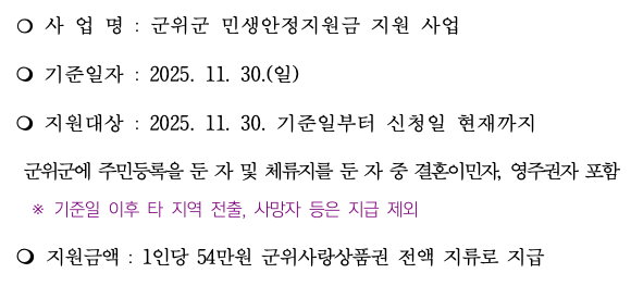 - 기준일 이후 군위군을 떠나 다른 지역으로 이사한 경우에는 받을 수 없습니다.