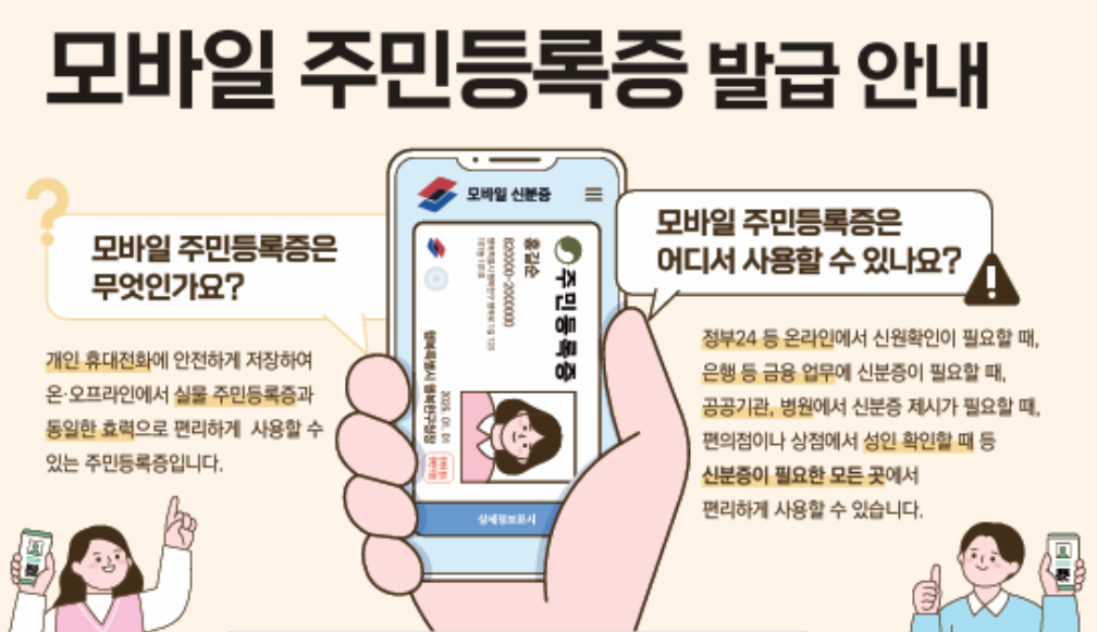 - 주민센터·은행·공항·병원·온라인 인증 등 다양한 곳에서 실물 신분증을 대체할 수 있음