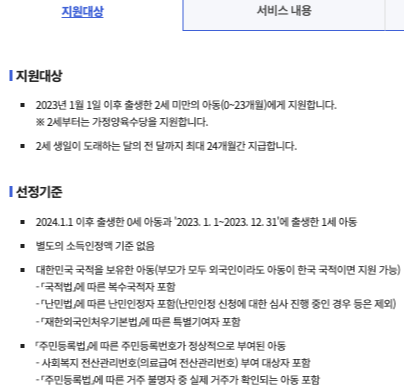 부모급여는 만 2세 미만(0~23개월) 아동을 키우는