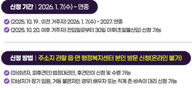 → 현재 운영 방식상, 신청은 주소지 관할 행정복지센터를 직접 방문하는