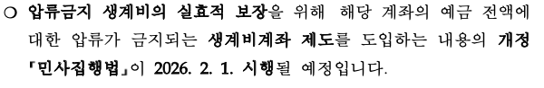 → 생계비 계좌는 민사 절차 기준으로 운영되며,