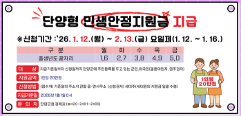 민생안정지원금은 단양군에 주민등록이 되어 있는 주민을 대상으로