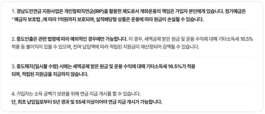 경남도민연금 신청 시 유의사항