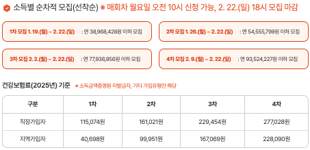 - 모집 일정, 소득 구간별 접수 차수, 유의사항 등을 함께 확인할 수 있습니다.