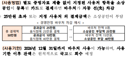 지정된 항목에서 결제하면 바우처 금액이 자동으로