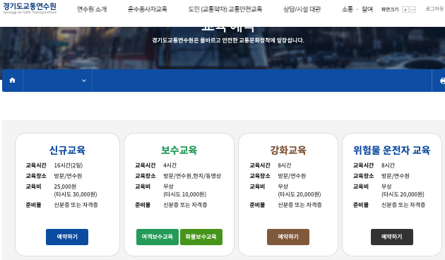 경기도 교통연수원 보수교육은 공식 예약 홈페이지에 접속해 로그인한 후,