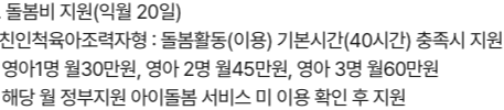 ※ 해당 월에 정부 아이 돌봄 서비스를 이용하지 않은 경우에 지급됩니다.