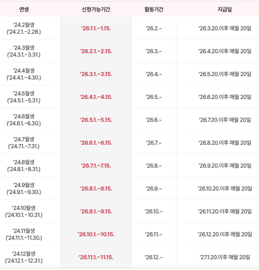 → 신청은 매월 1일부터 15일까지 진행되며, 기간 내 접수하지 못한 경우에는