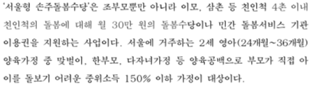 서울시에 거주하는 24~36개월 영아 가정 중 일정 소득 기준과 돌봄 요건을 충족하고,