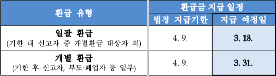 - 개별 환급 지급 예정일 : 2026년 3월 31일까지