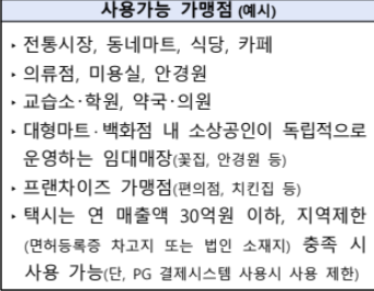 실제 사용 가능 업종과 지역은 신청 시점의 공식 안내를 확인하는 것이 좋습니다.