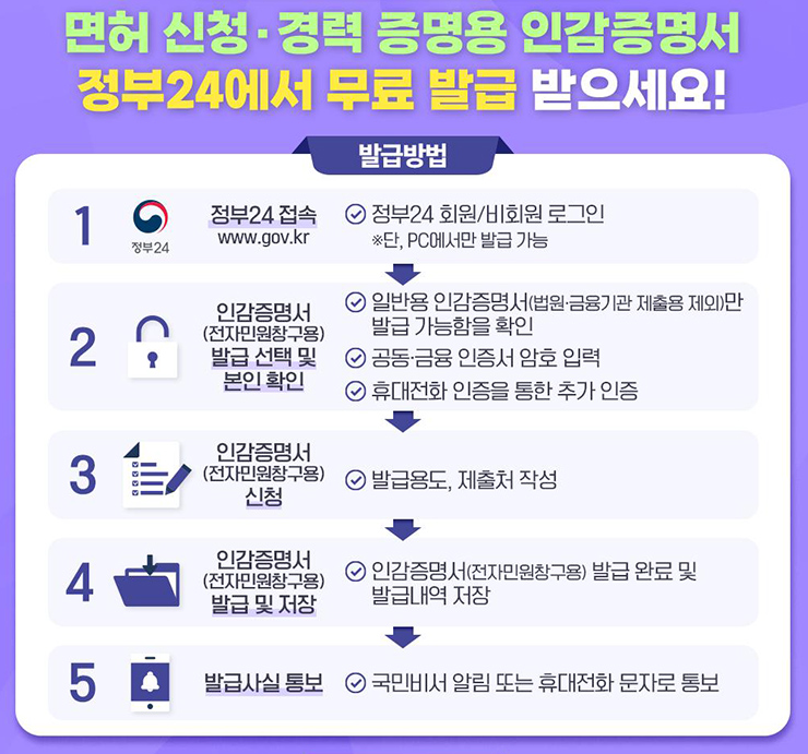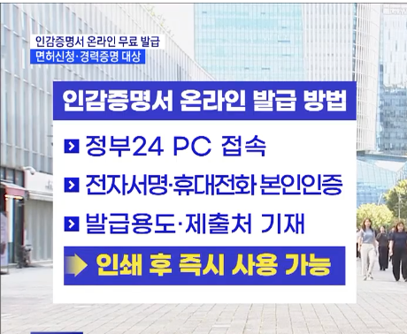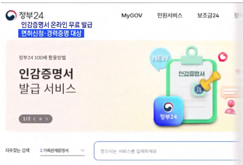 <예시> 면허 신청·정부 지원사업·경력 증명 등