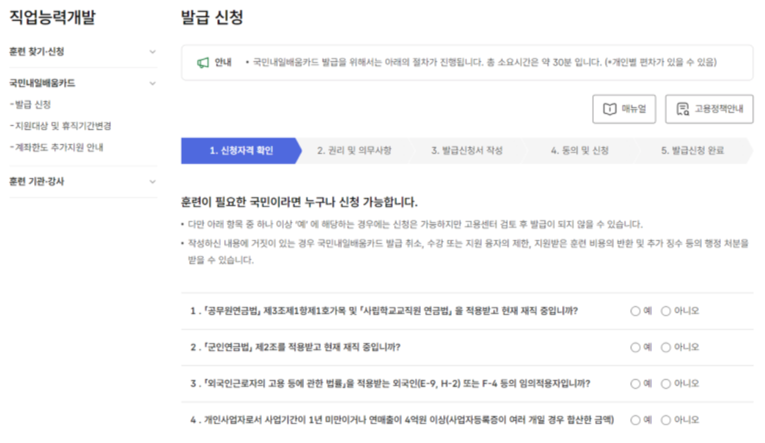 1. 내일배움카드 신청 자격은 어떻게 되나요?