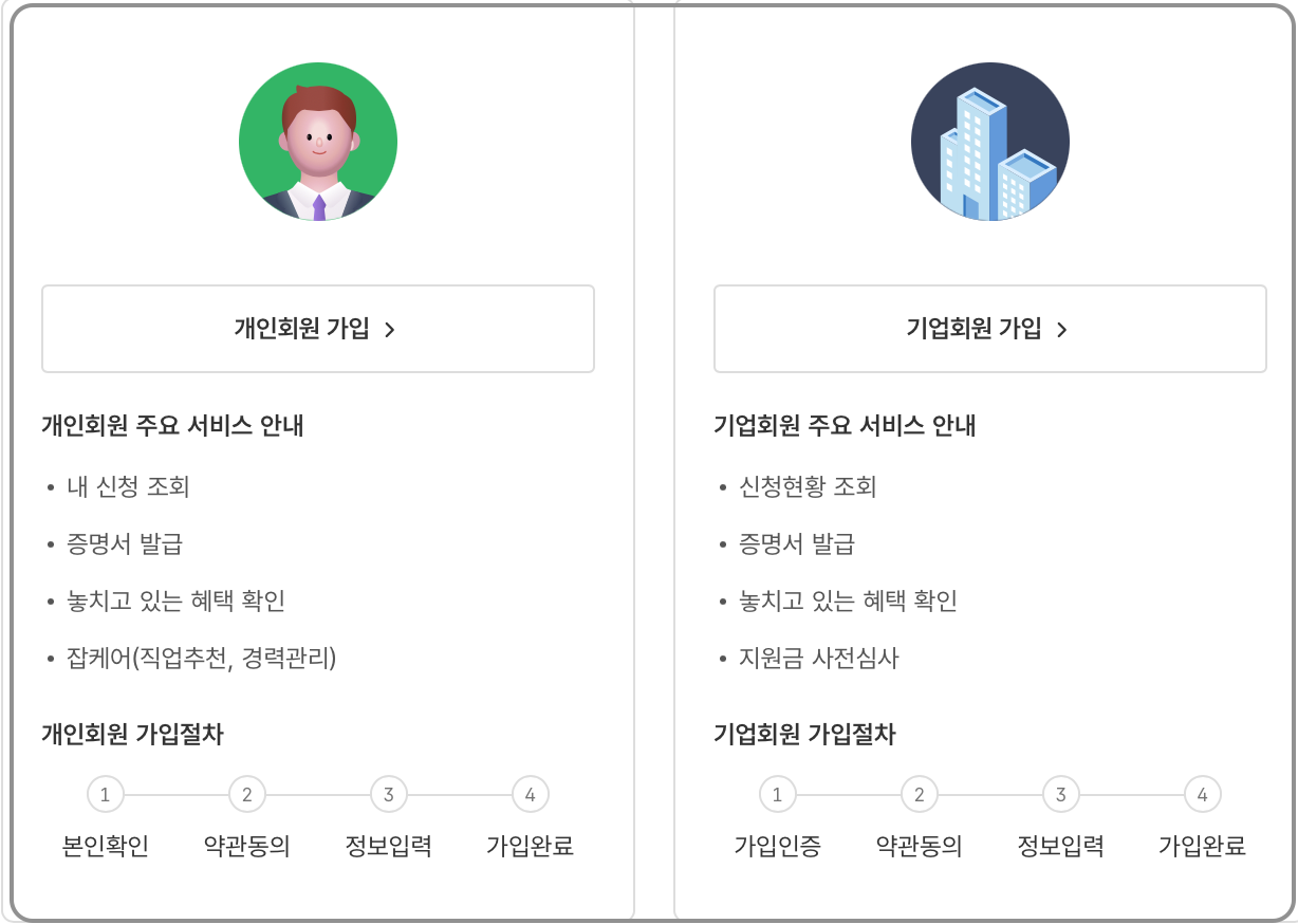 - 실업자·재직자·자영업자 등 다양한 지원 대상에 맞춘 서비스를 제공함