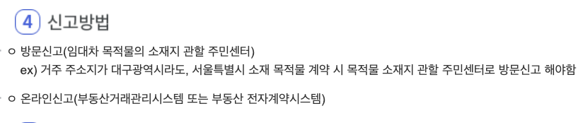 - 신고 장소: 임대 주택의 관할 읍·면·동 주민센터