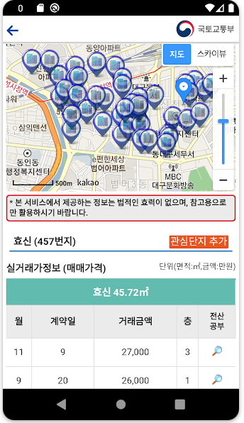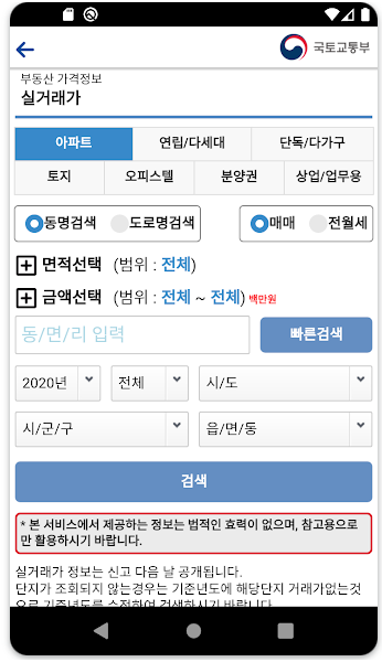 아파트 실거래가 모바일 조회(국토교통부 앱 기준)