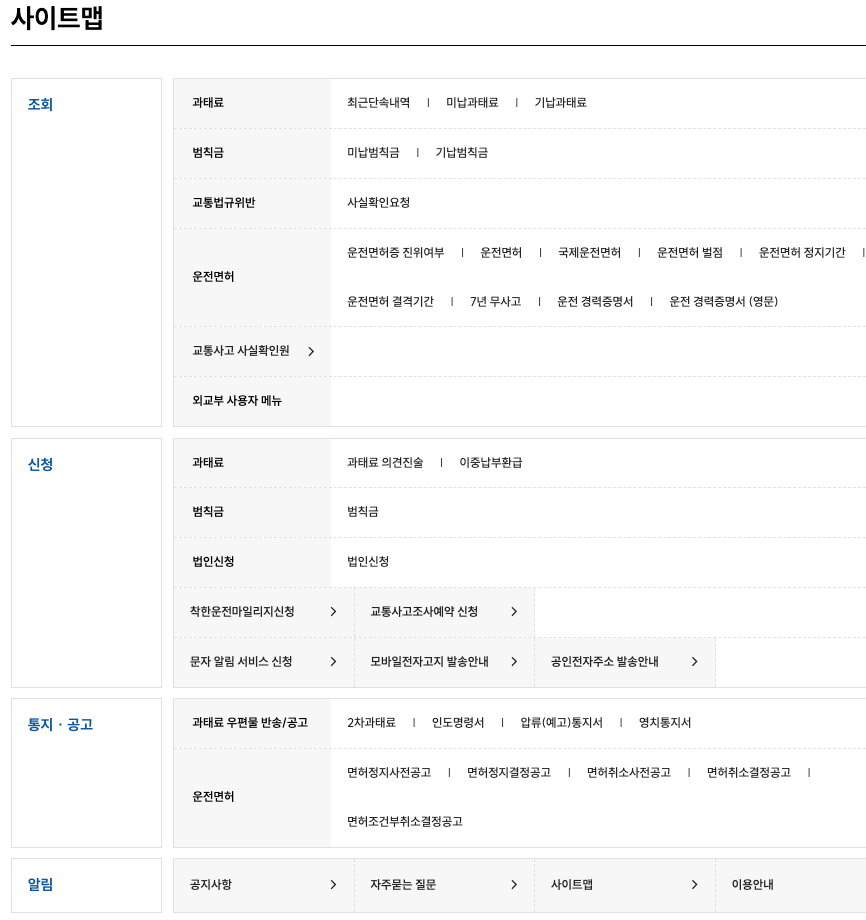 경찰청 교통민원24시 홈페이지 주요 서비스