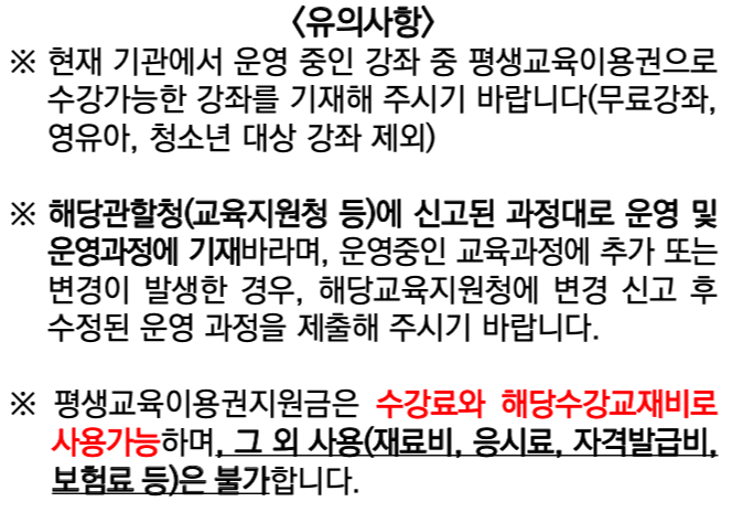 - 지정된 평생교육기관에서 수강료 및 교재비 결제 가능