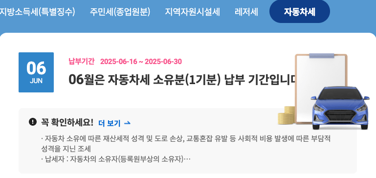 - 1기분 납부기간: 2025년 6월 16일(월) ~ 6월 30일(월)